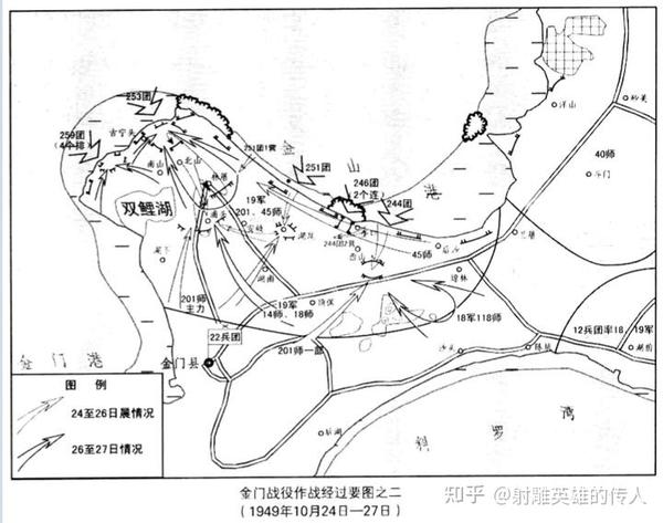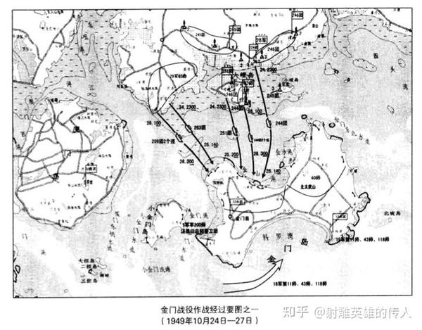 贰| 作战经过10月24日晚19时,我登陆部队第一梯队第244 团(加强第246团3营)、第251团、第253团共9000余名官兵陆续登船,待命起渡。由于船只不够,各团均有1至2个战斗连队等待续运。此时,第10兵团电示第 28 军前指:敌第12兵团主力已开始在金门岛上岸。副军长肖锋与兵团首长通话,建议暂停攻击,待查明敌情和筹备充足的船只后再打。但兵团首长指示,敌军只是在下午各1个团在大、小金门上岸,敌情没有大的变化,一定要抢在敌第12兵团部队主力上岸之前占领金门,因而“按原计划执行,决心不能变”。